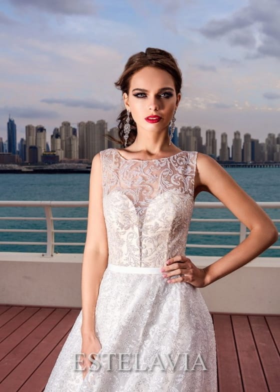 Свадебное платье из мерцающего кружева без рукавов А-силуэт