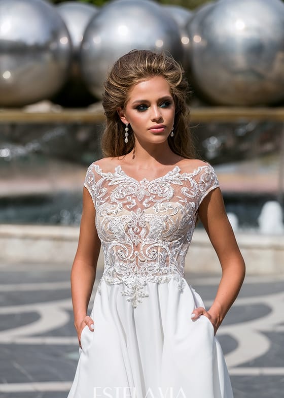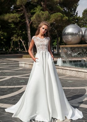 Свадебное платье с атласной юбочкой и карманами, лиф украшен кружевом и жемчужным бисером, красиво оформленная спинка подчеркнет вашу женственность. Отличный выбор для тех, кто предпочитает современную классику. Артикул 10213
