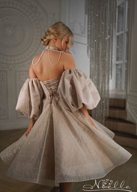 Вечернее платье с чокером из блестящей ткани сделает ваш образ неповторимым и ярким. Съемные рукава, пышная струящаяся юбочка. Арт. 2035