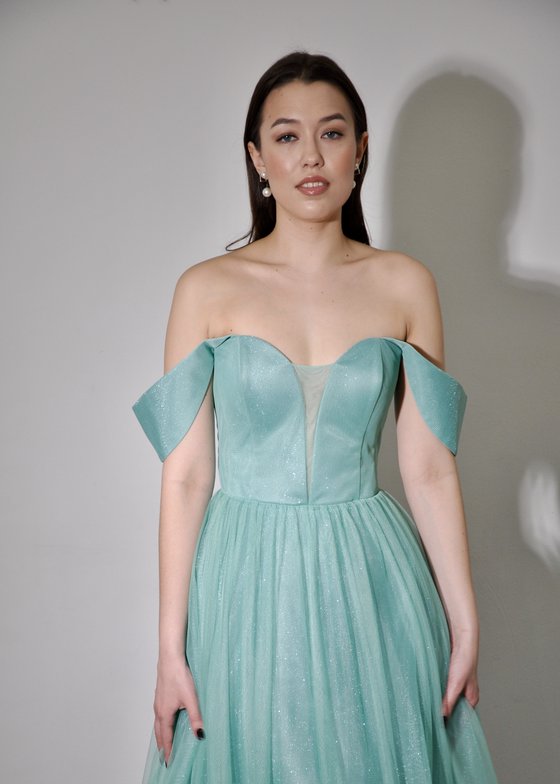 Откройте для себя очарование вечернего платья Мираэль — изысканного наряда, созданного для тех, кто ценит лёгкость, гармонию и утончённую элегантность. Это платье станет вашим верным спутником на самых важных событиях: от выпускного бала до торжественного приёма. Почему стоит выбрать платье Мираэль? Воздушный силуэт: пышная юбка из многослойного тюля создаёт эффект невесомости и позволяет свободно двигаться — танцевать и наслаждаться вечером без ограничений. Романтичные рукава‑крылышки: деликатно обрамляют плечи, добавляя образу нежности и утончённости. Нежный бирюзовый оттенок: цвет напоминает морскую лагуну на рассвете — он освежает, подчёркивает естественную красоту и подходит для любого сезона. Продуманный крой: корсетная основа мягко подчёркивает талию, а свободный верх создаёт сбалансированный силуэт, который идёт девушкам с разными типами фигуры. Качественные материалы: лёгкий тюль, эластичная подкладка и аккуратная фурнитура обеспечивают комфорт на протяжении всего вечера. Для каких событий подойдёт платье Мираэль? Выпускной бал: подчеркнёт вашу юность и элегантность, создаст незабываемый образ для фото. Вечерний приём: идеально впишется в дресс‑код торжественного мероприятия. Свадьба (в качестве гостя): нежный оттенок и романтичный крой гармонично сочетаются с атмосферой праздника. Фотосессия: фактура ткани и игра цвета прекрасно смотрятся на снимках, создавая эффект «воздушности». Юбилей или корпоративный вечер: добавит образу изысканности без излишней строгости. Ключевые преимущества: Универсальность: платье легко адаптировать под разные стили с помощью аксессуаров — от минималистичных украшений до ярких акцентов. Комфорт: продуманная конструкция не сковывает движения, а дышащие материалы обеспечивают удобство даже в тёплом помещении. Качество пошива: ровные швы, надёжная фурнитура и тщательная обработка краёв гарантируют безупречный вид на протяжении всего срока носки. Возможность небольшой корректировки по фигуре. Создайте свой идеальный образ с платьем Мираэль! Позвольте себе сиять в этот особенный вечер! ✨