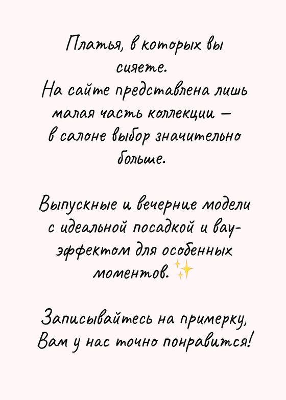 здравствуйте, ездили выбирали платье на выпускной 11 класса, первое платье померили, его и купили!! шикарный магазин, а особенно Елена, персонал работает на высшем уровне, спасибо вам большое !!