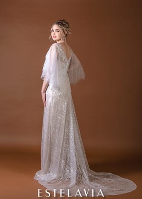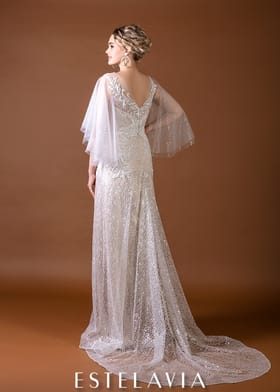 Силуэтное платье с открытой спиной и рукавами крылышками