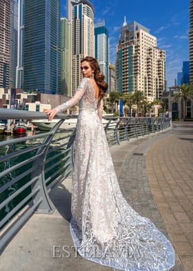 Свадебное платье прямого силуэта , фактурное кружево , цвет капучино. К платью прикрепляется легкий шлейф, который идеально сочетается с данной моделью. Артикул 10238