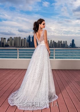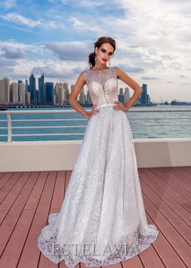 Свадебное платье из мерцающего кружева без рукавов А-силуэт