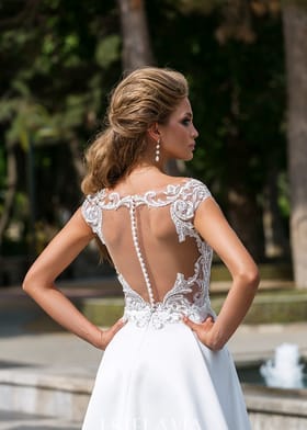 Свадебное платье с атласной юбочкой и карманами, лиф украшен кружевом и жемчужным бисером, красиво оформленная спинка подчеркнет вашу женственность. Отличный выбор для тех, кто предпочитает современную классику. Артикул 10213
