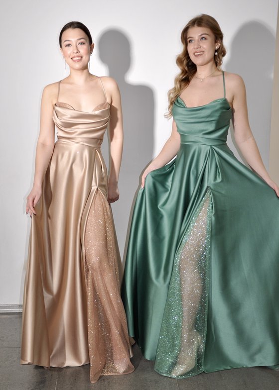 Вечерние платья «Грация»: изысканные модели в трендовых цветах — серебро, изумруд, мята, золото, пудровый
