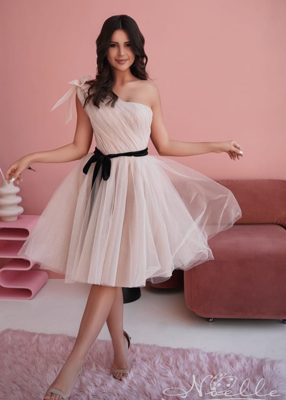 Выпускное платье на одно плечо с бантом